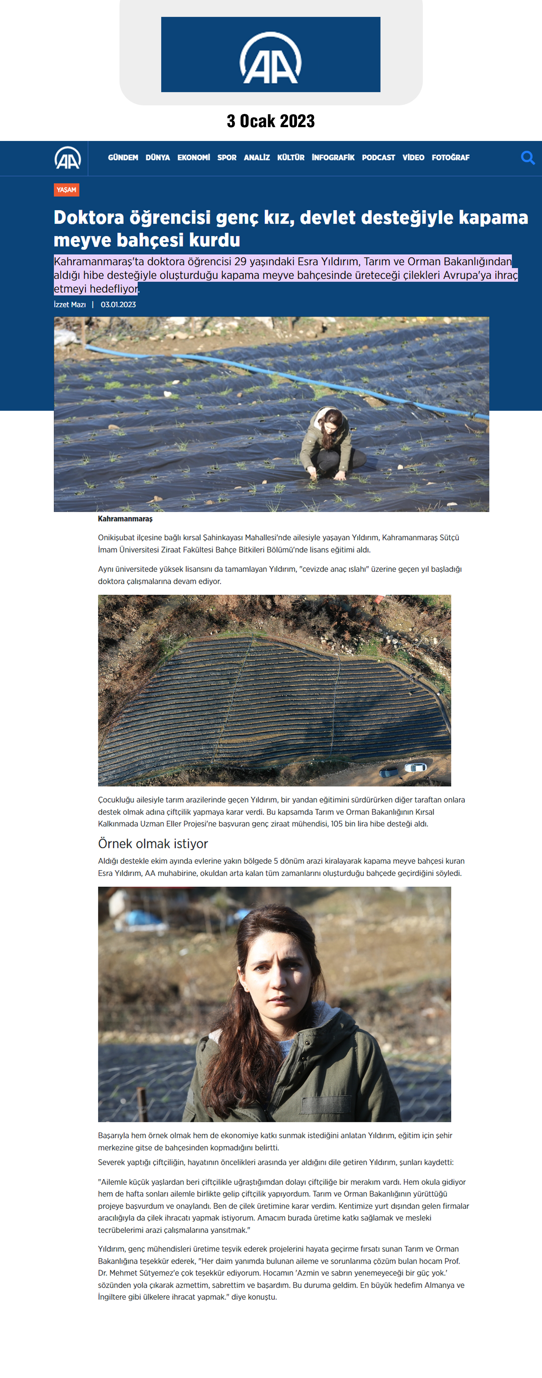 Doktora öğrencisi genç kız, devlet desteğiyle kapama meyve bahçesi kurdu