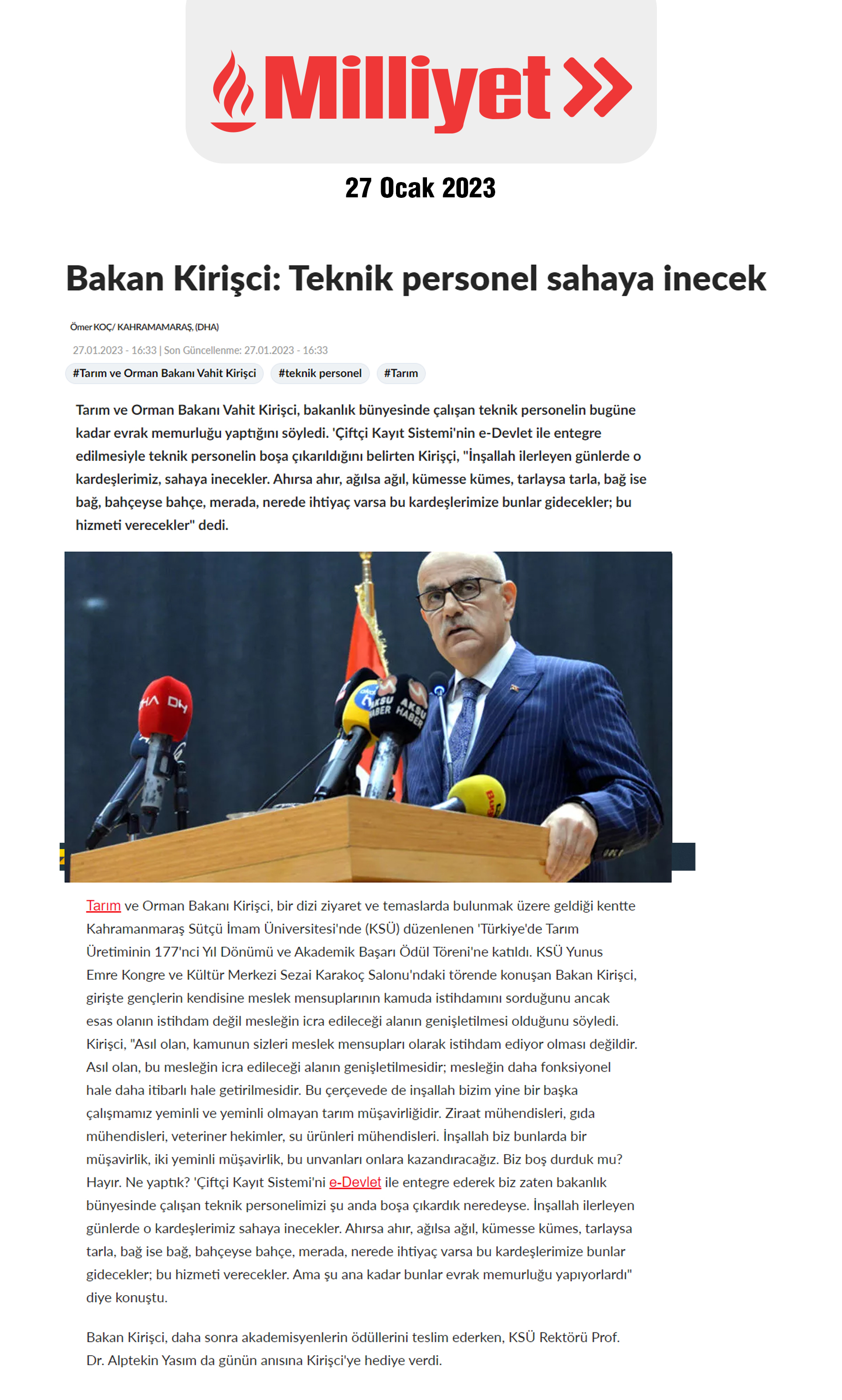 Haber Linki: https://www.milliyet.com.tr/ekonomi/bakan-kirisci-teknik-personel-sahaya-inecek-6894541