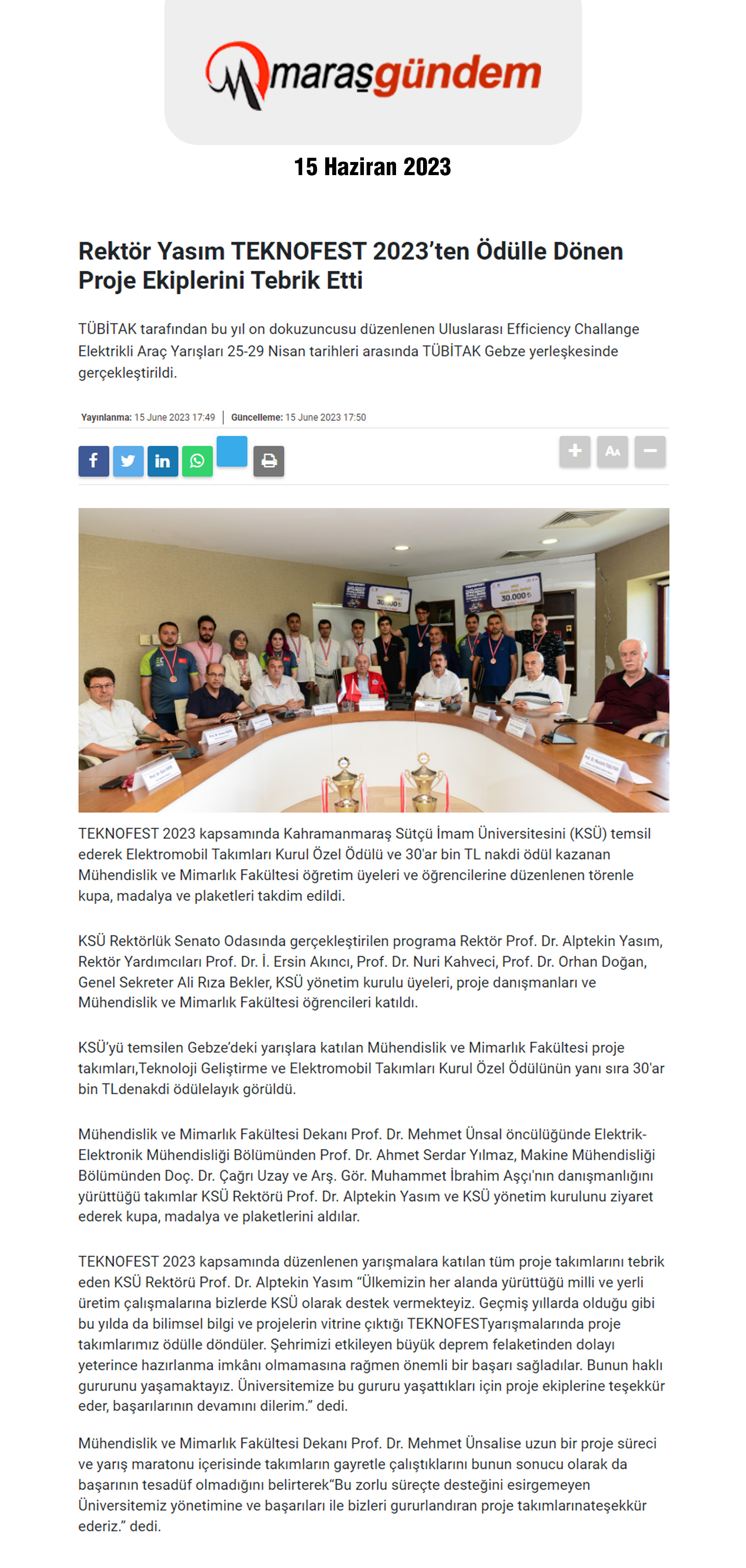 Haber Linki: https://www.marasgundem.com.tr/kahramanmaras/rektor-yasim-teknofest-2023ten-odulle-donen-proje-ekiplerini-tebrik-etti-1510923h