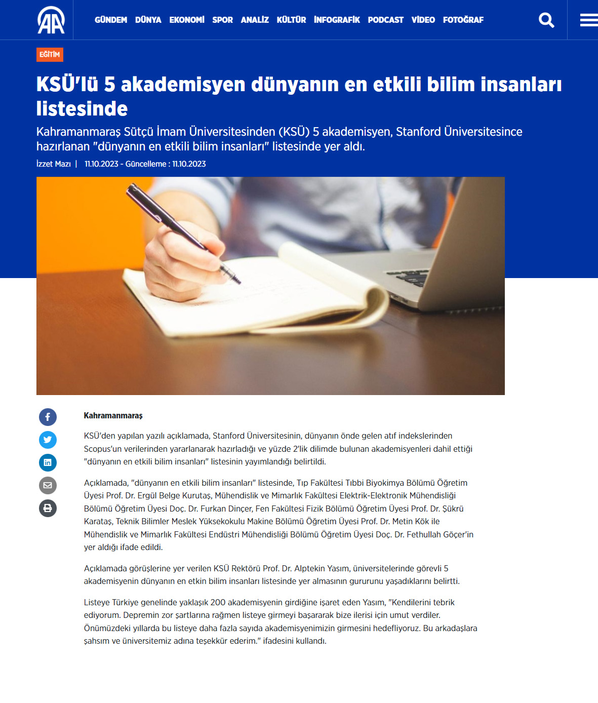 Haber Linki: https://www.aa.com.tr/tr/egitim/ksulu-5-akademisyen-dunyanin-en-etkili-bilim-insanlari-listesinde/3016079