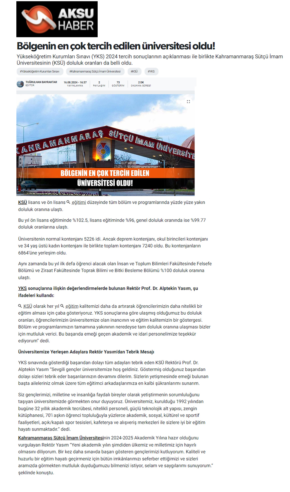 Haber Linki: https://www.aksutvhaber.net/bolgenin-en-cok-tercih-edilen-universitesi-oldu