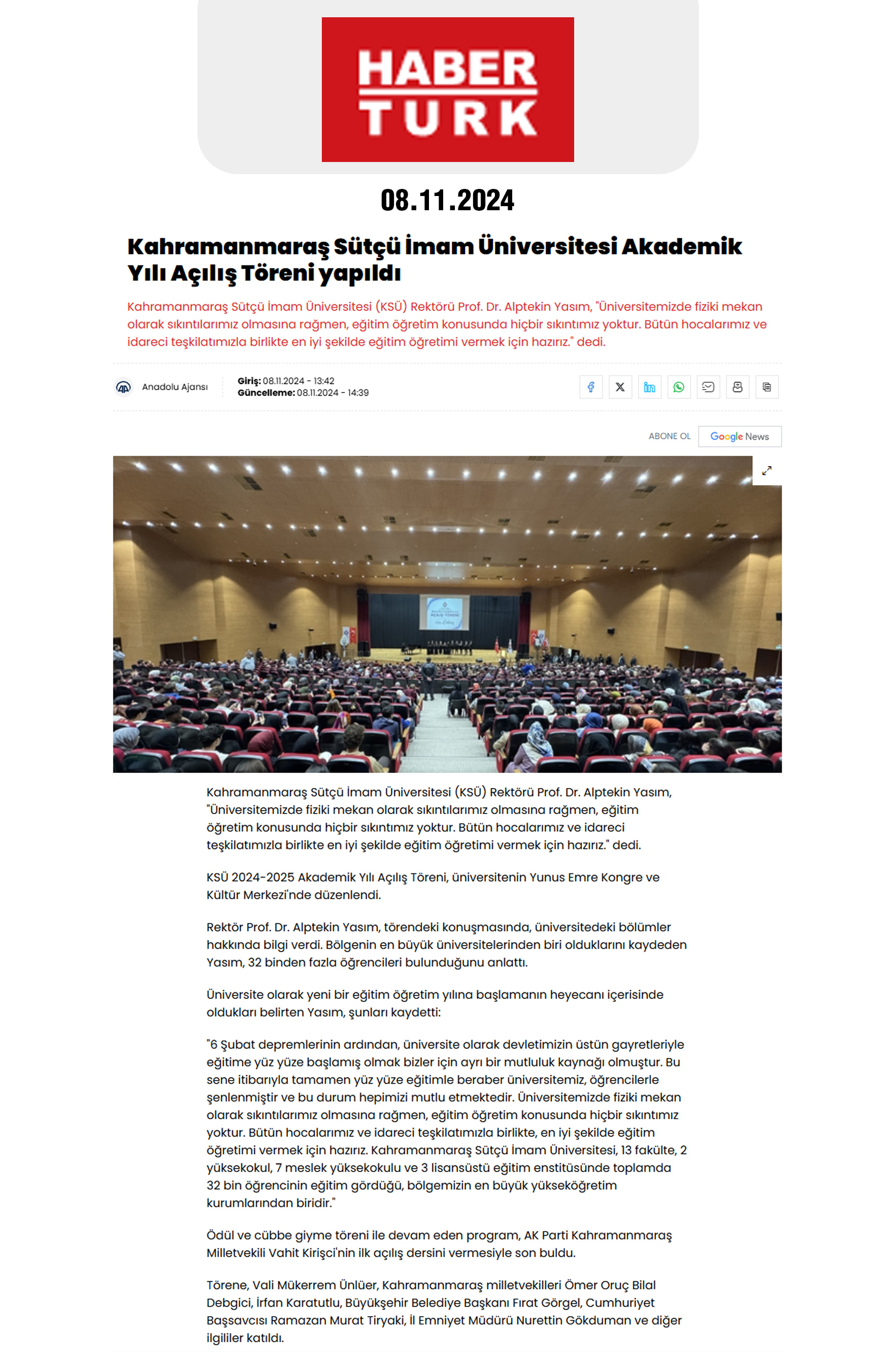 Haber Linki: https://www.haberturk.com/kahramanmaras-haberleri/36140933-kahramanmaras-sutcu-imam-universitesi-akademik-yili-acilis-toreni-yapildi