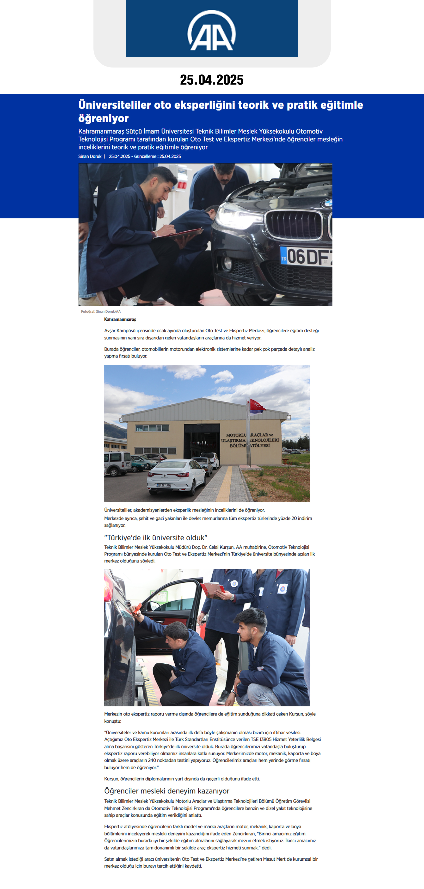 Haber Linki: https://www.aa.com.tr/tr/yasam/universiteliler-oto-eksperligini-teorik-ve-pratik-egitimle-ogreniyor/3548350