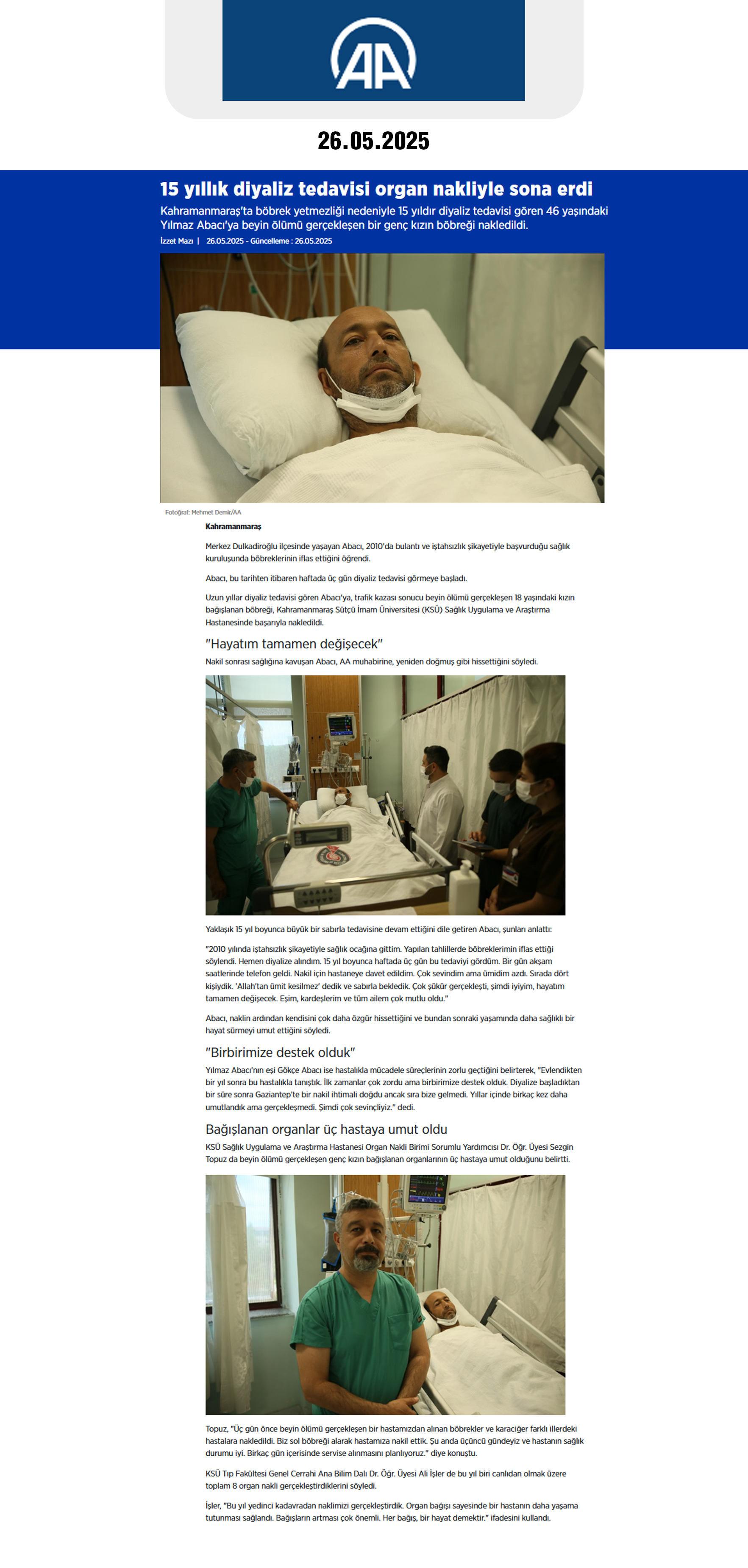 Haber Linki: https://www.aa.com.tr/tr/saglik/15-yillik-diyaliz-tedavisi-organ-nakliyle-sona-erdi/3579628